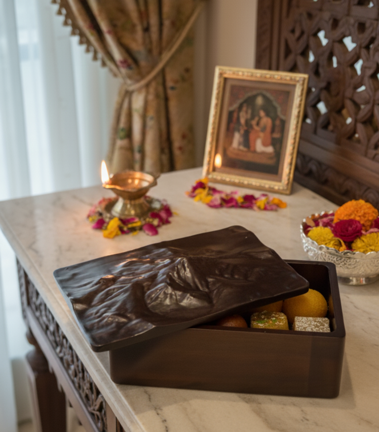 A handcrafted wooden box featuring intricately carved Himalayas on the lid, symbolising their enduring strength. Thoughtfully designed, it serves both as a statement piece and a functional storage box for your cherished belongings.