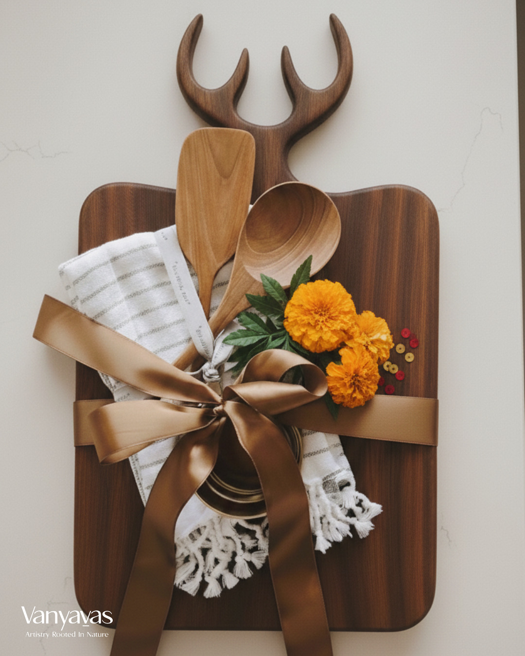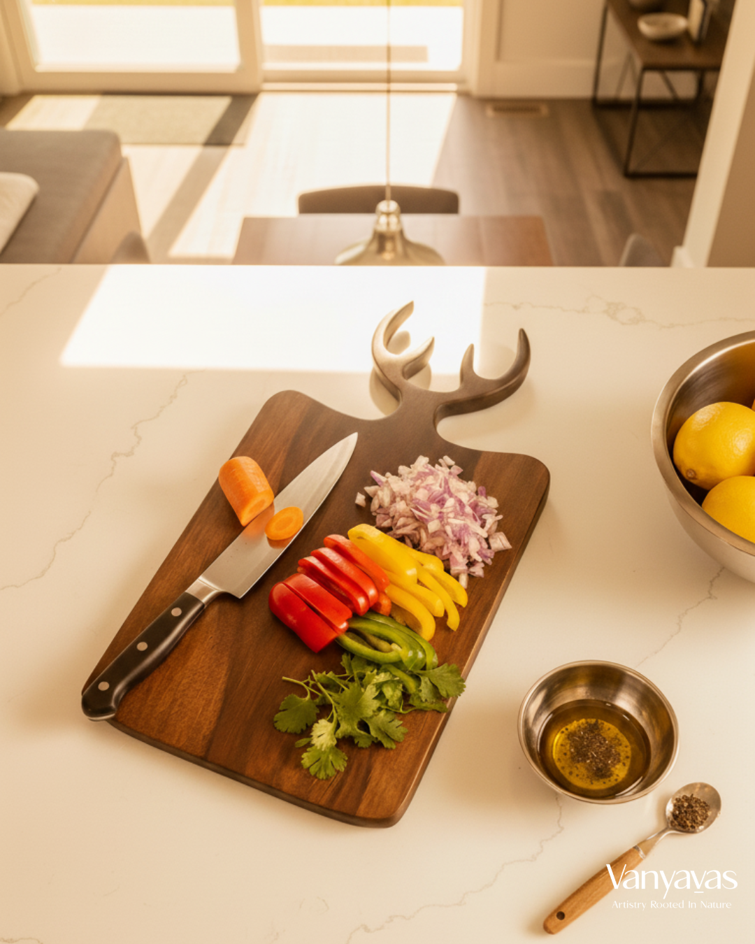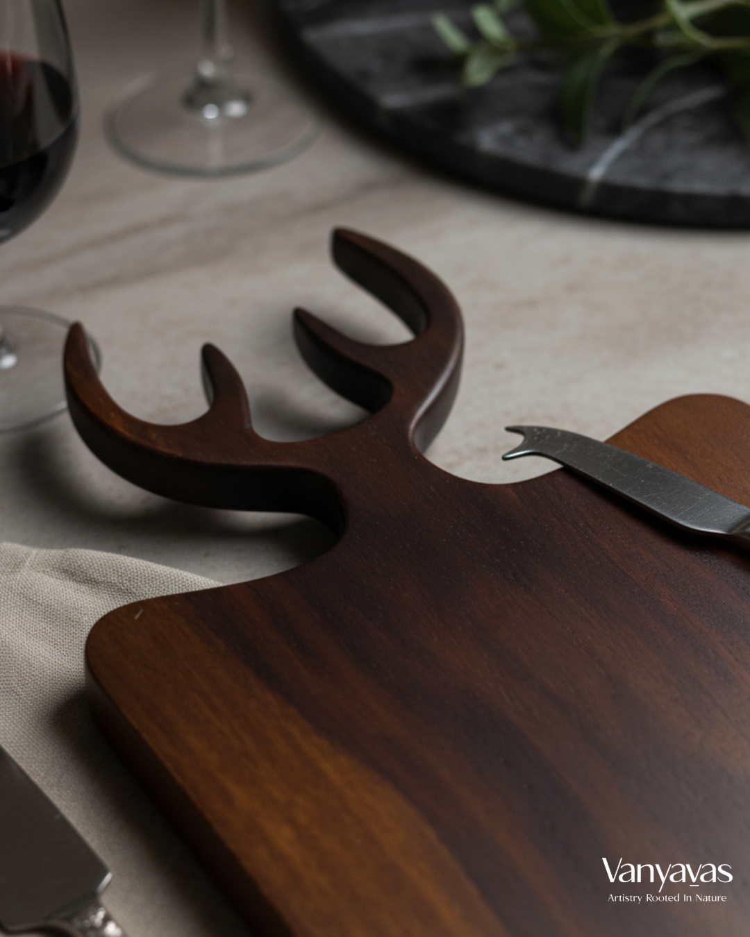 Inspired by the graceful antlers of deer, this handcrafted wooden board brings the wild into everyday living. Read More Below.